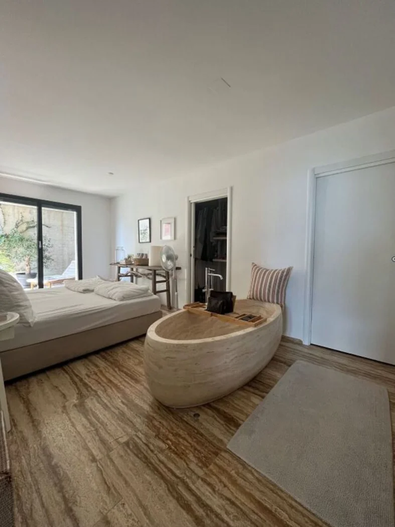 - Camera padronale dotata di un vestibolo, bagno e vasca da bagno di travertino posata al centro della camera, terrazza privata