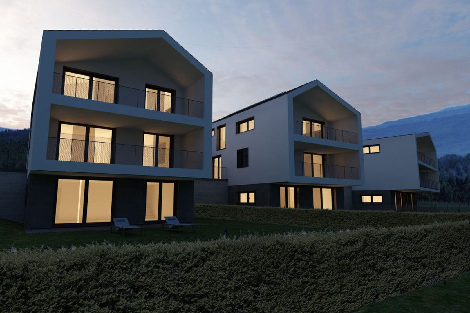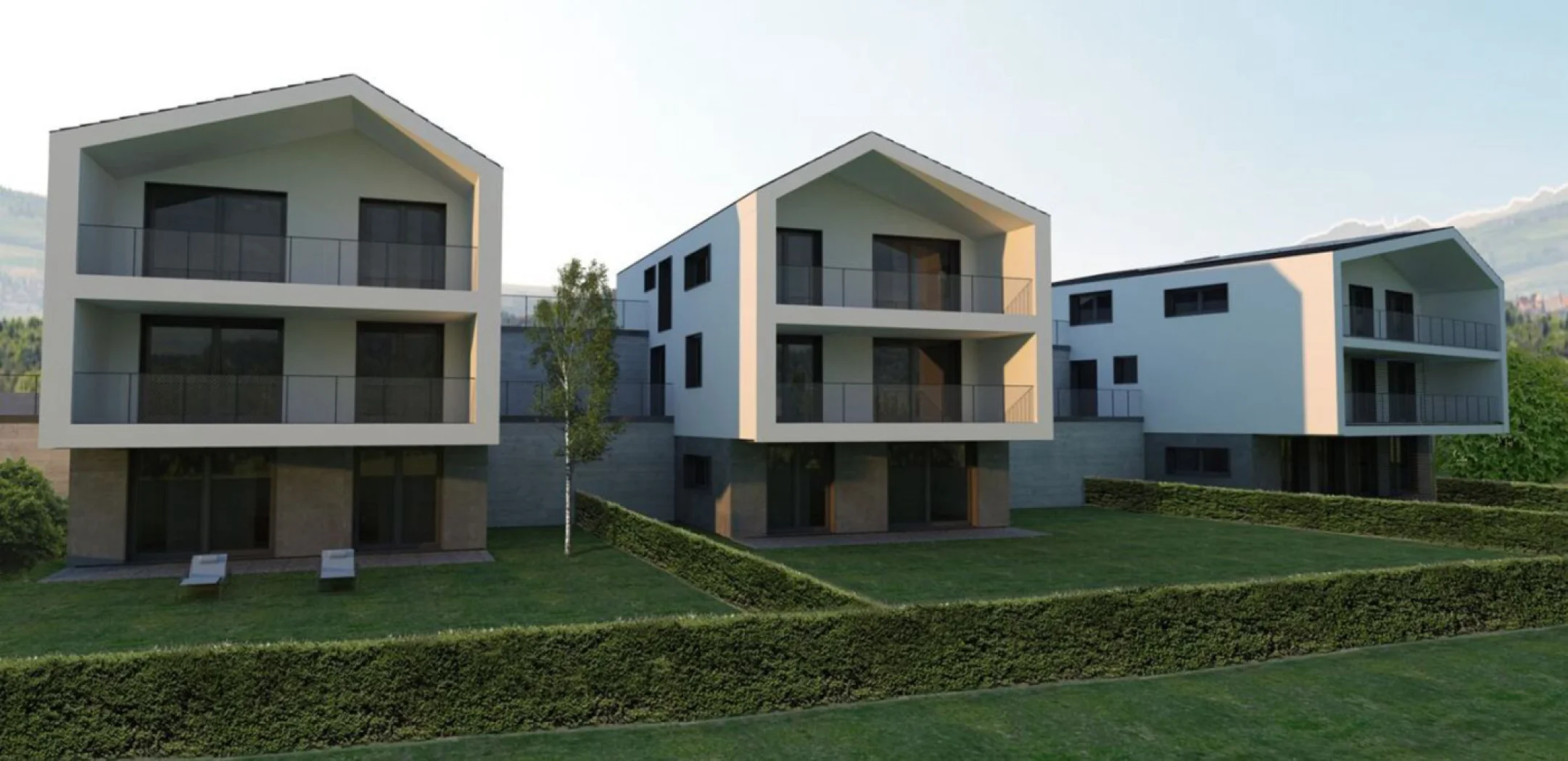 Le abitazioni avranno metrature variabili distribuite volumetricamente in tre distinti blocchi sfalsati ed inseriti armoniosamente nel declinante terreno e caratterizzati da ampie terrazze sui fronti sud ed est.