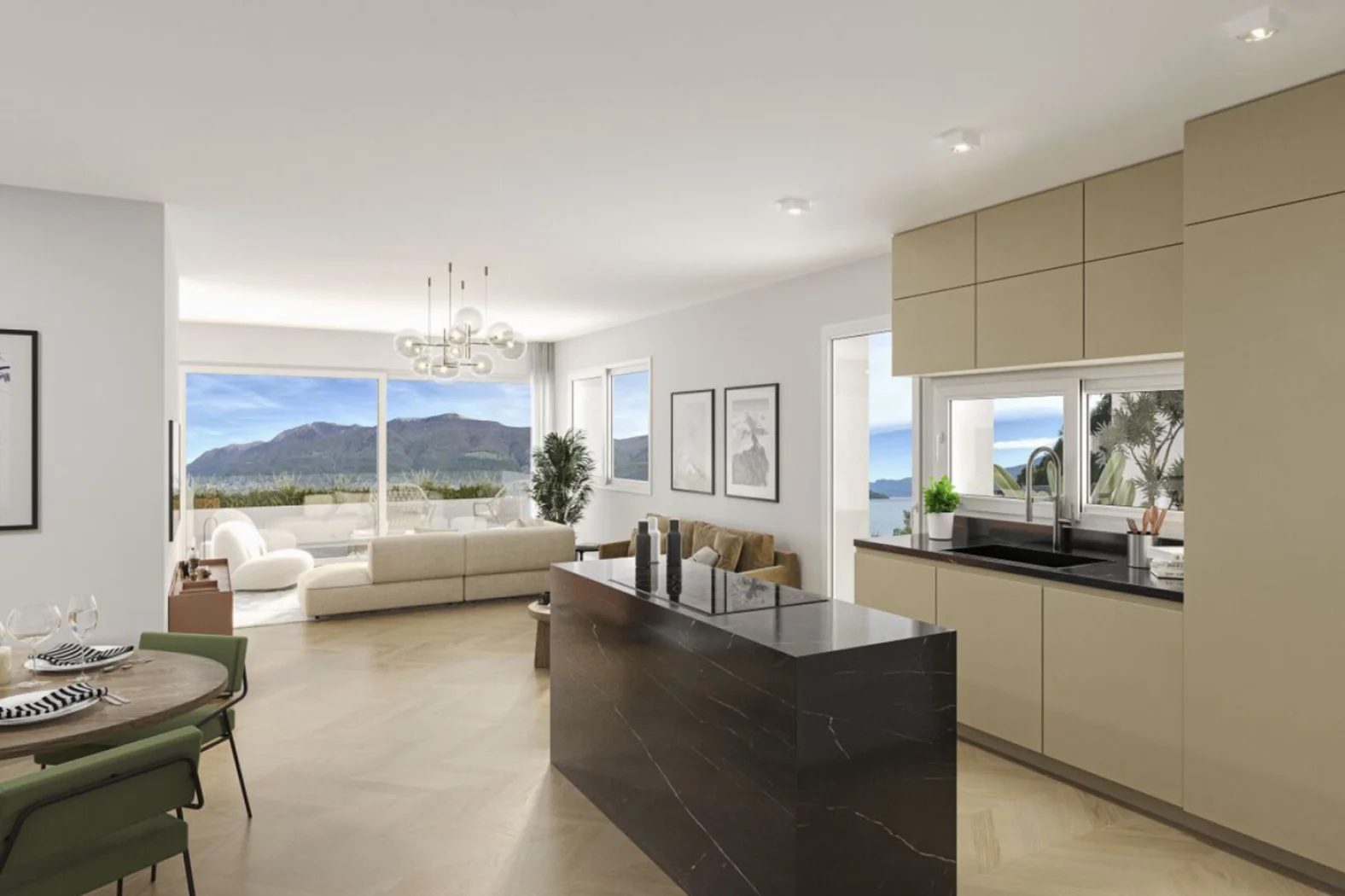Gli appartamenti sono di grandezza variabile da 2,5 a 5,5 locali e ciascuno è dotato di un’ampia terrazza coperta. Sono caratterizzati da planimetrie moderne, aperte, luminose e flessibili, in grado di soddisfare le più disparate esigenze abitative. Si possono realizzare anche alcune residenze secondarie.