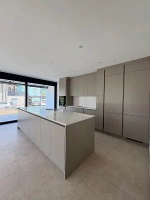 Ampia area living con cucina open space che si apre su un soggiorno spazioso e molto luminoso, perfetto per momenti di relax o convivialità.