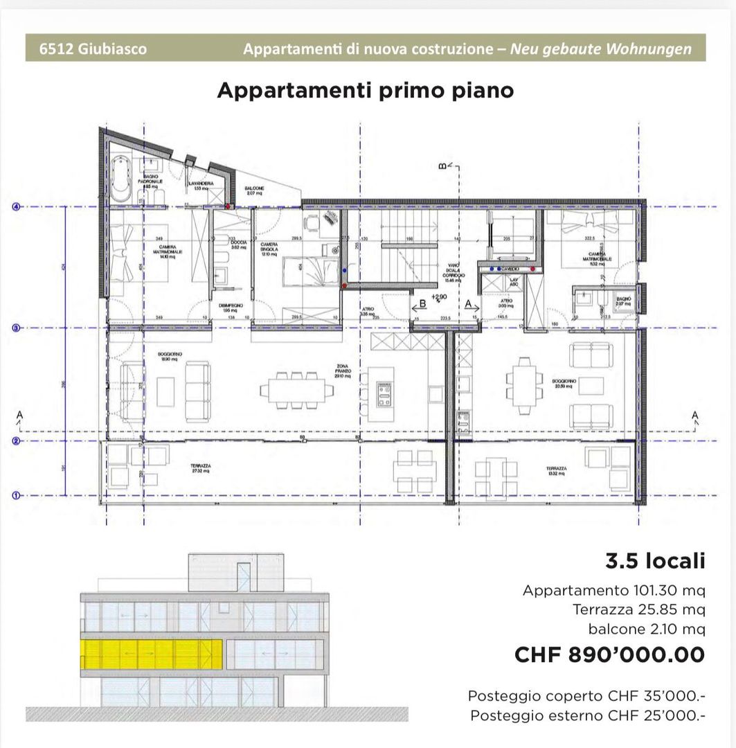 Vendesi stabile di prossima costruzione di 25 appartamenti, Giubiasco