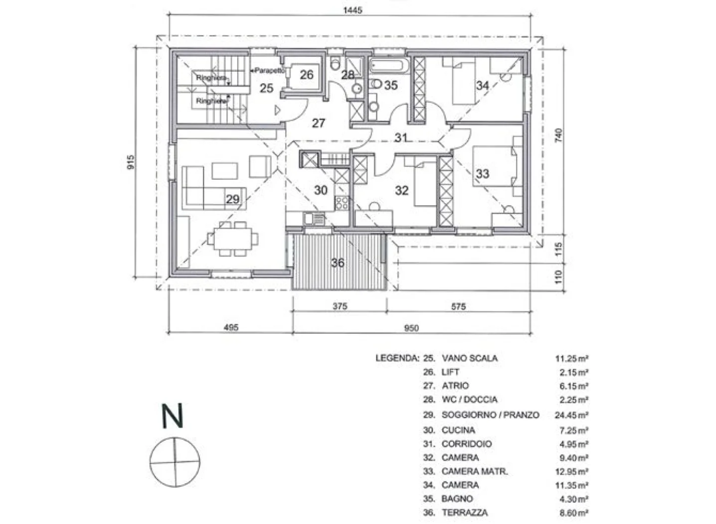 - Giardino recintato con cancello privato al piano inferiore di 77 mq